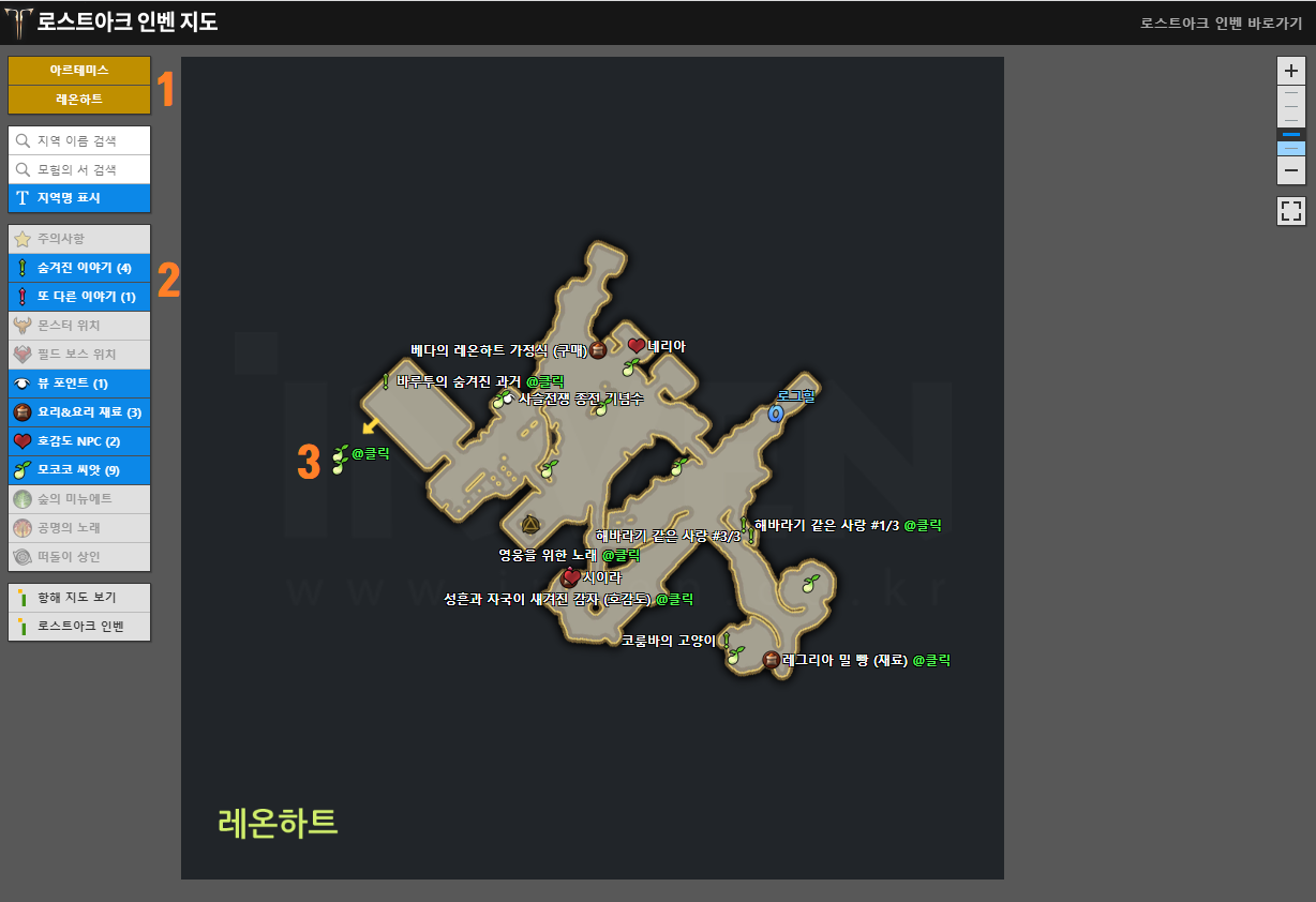 이런 기나긴 모험을 좀 더 편하게 안내해 줄 로아 인벤지도의 사용법은 아주 간편합니다.
