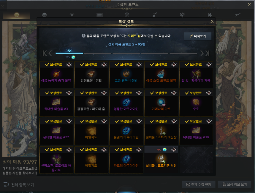 섬의 마음 수집 보상