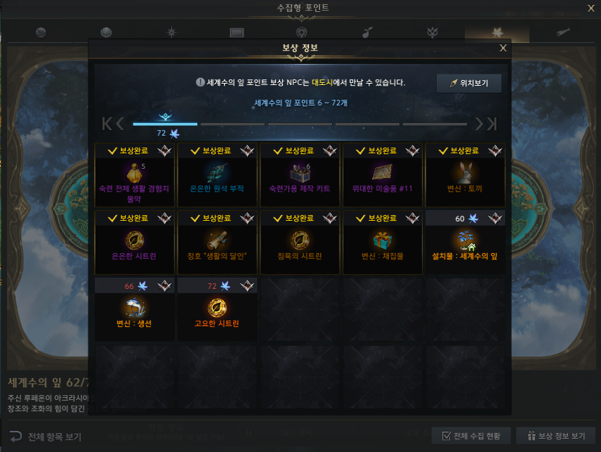 세계수의 잎 보상